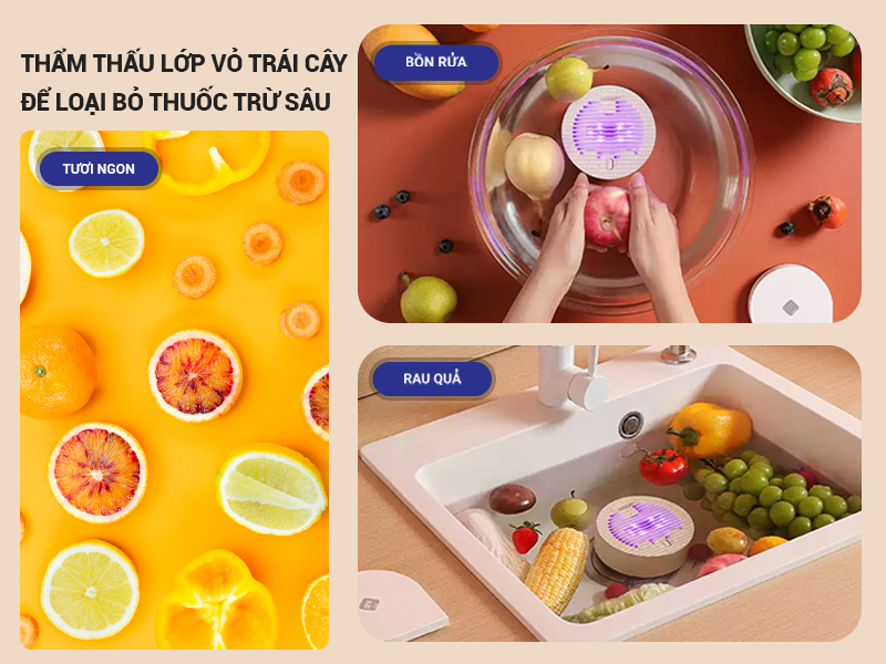 ✓ dòng bỏ dư lượng thuốc trừ sâu và hóa chất độc hại được tiêu dùng trong trồng trọt còn bám lại trên rau củ quả sau lúc thu hoạch.